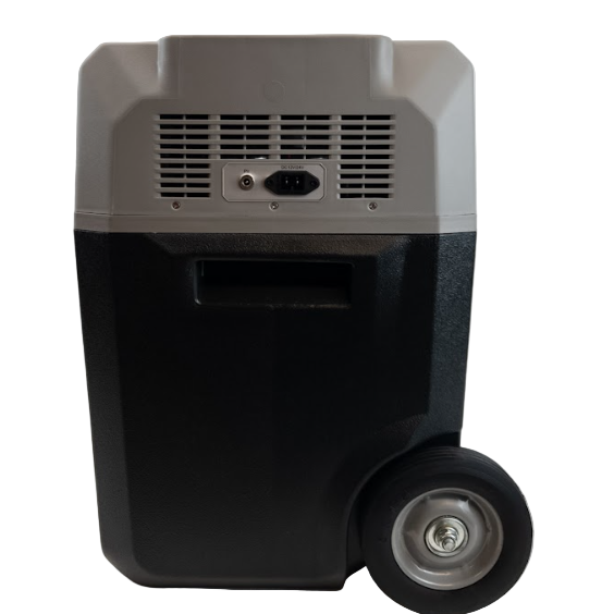 The LiON Cooler X40A is easy to transport with rugged wheels and telescopic handle, featuring a built-in battery for up to 21 hours of cooling – ideal for road trips, camping, and outdoor adventures.